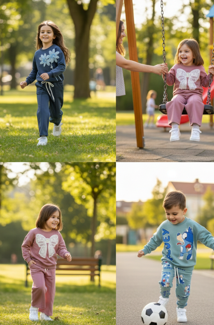 KIZ ÇOCUK RENKLİ FİYONK DETAYLI EŞOFMAN TAKIMI